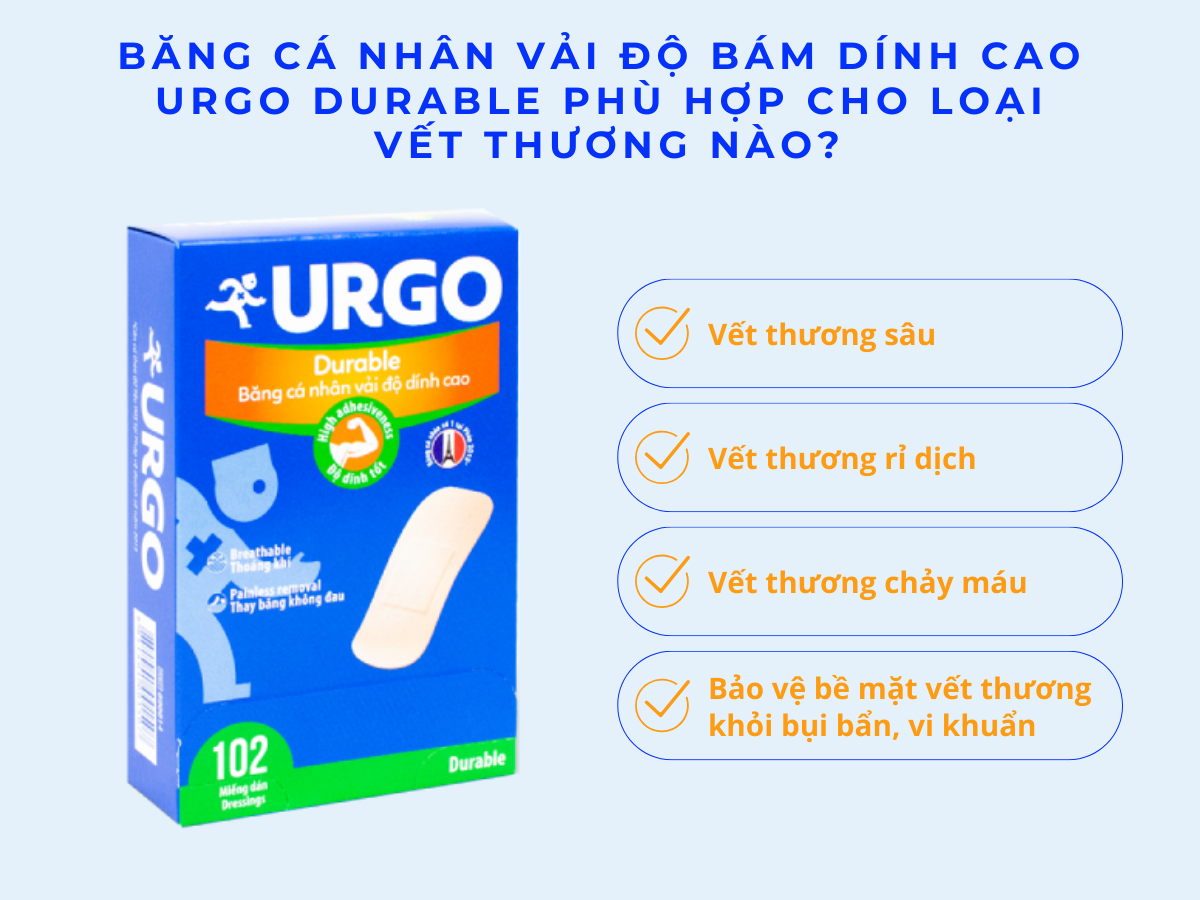 · Urgo Durable là nhãn hiệu băng cá nhân và băng keo số 1 tại Việt Nam